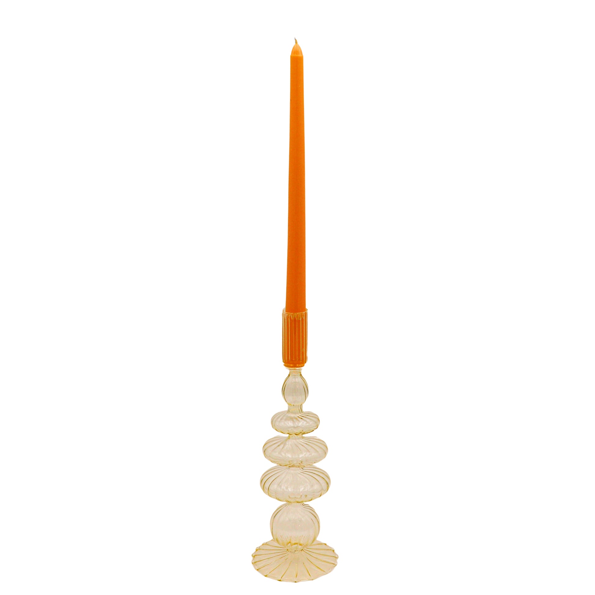 Measuring 26.7 cm (10.5 in) in length and 8.9 cm (3.5 in) in width, they offer a graceful silhouette that suits a range of decor styles from contemporary to traditional. Ideal for accentuating candlelight during intimate dinners or adding a decorative flourish to your mantel or dining table, these holders marry form and function effortlessly. Easy to maintain, their durable glass construction ensures they remain a timeless feature in your living space, bringing subtle elegance and charm for years to come.