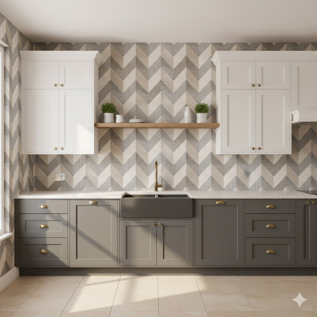 Meridian Weave brings geometric sophistication to any room with its striking chevron pattern rendered in layered grays, taupes, and ivory. The subtle woven-linen texture overlay creates genuine visual depth—modern without demanding attention, structured without feeling cold. This is wallpaper that works as hard as you do: equally at home in a minimalist office, a cozy bedroom, or a living room that deserves better than boring walls. The understated palette is a chameleon's dream, playing beautifully with dark woods, sleek metals, and virtually any existing décor. That textile-inspired finish? It's not just pretty—it actually feels inviting, adding a whisper of tactile warmth that flat walls simply can't match. Whether you're after a subtle refresh or a confident design statement, Meridian Weave delivers polish without pretension. Pattern repeat: 24" x 24". Perfect for creating seamless, professional installations that look intentional from every angle.