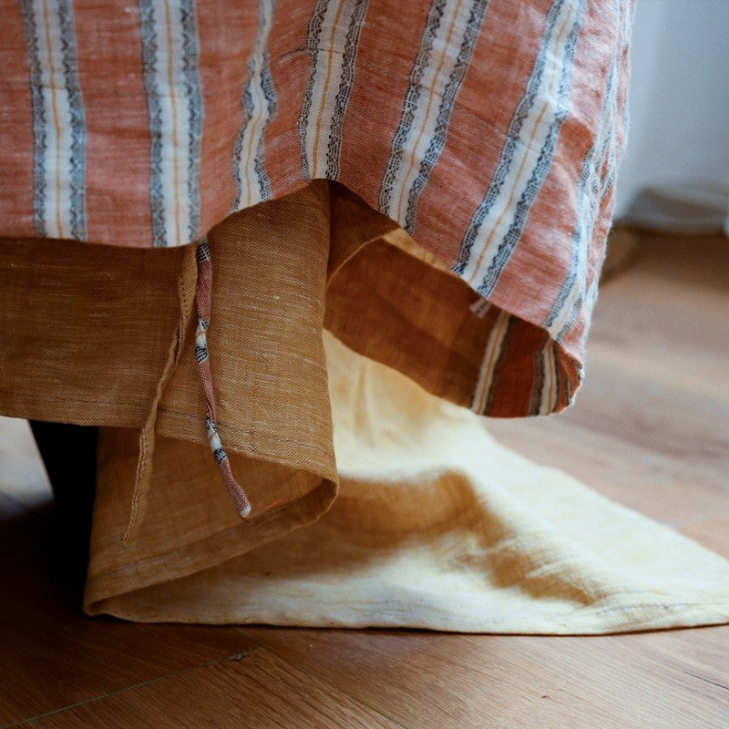 Pure 100% linen bedding in a soft PeachPuff hue with vertical stripes, pre-washed and ready to use. This duvet set features a zippered cover, two pillowcases, and a flat sheet—all crafted to soften and improve with every wash. Linen naturally regulates temperature, resists bacteria and static, and promotes healthier sleep regardless of season.