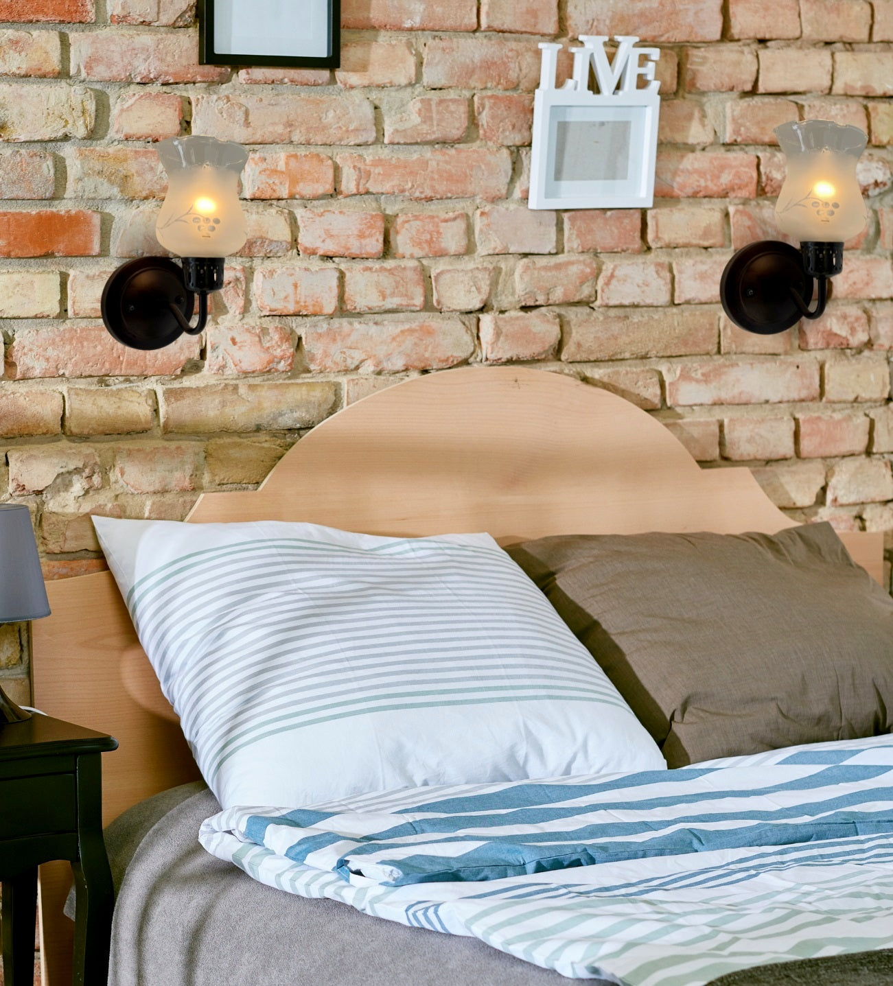 Step back in time with these charming 1960s glass wall sconces that bring vintage flair without the vintage price tag. Etched antique glass with a whimsical grapevine design filters light beautifully, while the scalloped edges add a touch of elegance to any room. Perfect for country, cottage, or farmhouse spaces craving that retro Mid-Century vibe. Measuring 10" tall and projecting 7" from the wall, these beauties have been refreshed with brand-new sockets and wiring for worry-free operation. Choose between Rubbed Bronze or Antique Black finishes. Hardwired installation kit included. Accommodates one 60W equivalent LED, CFL, or incandescent bulb (not included). They truly don't make glass like this anymore—especially at this price!
