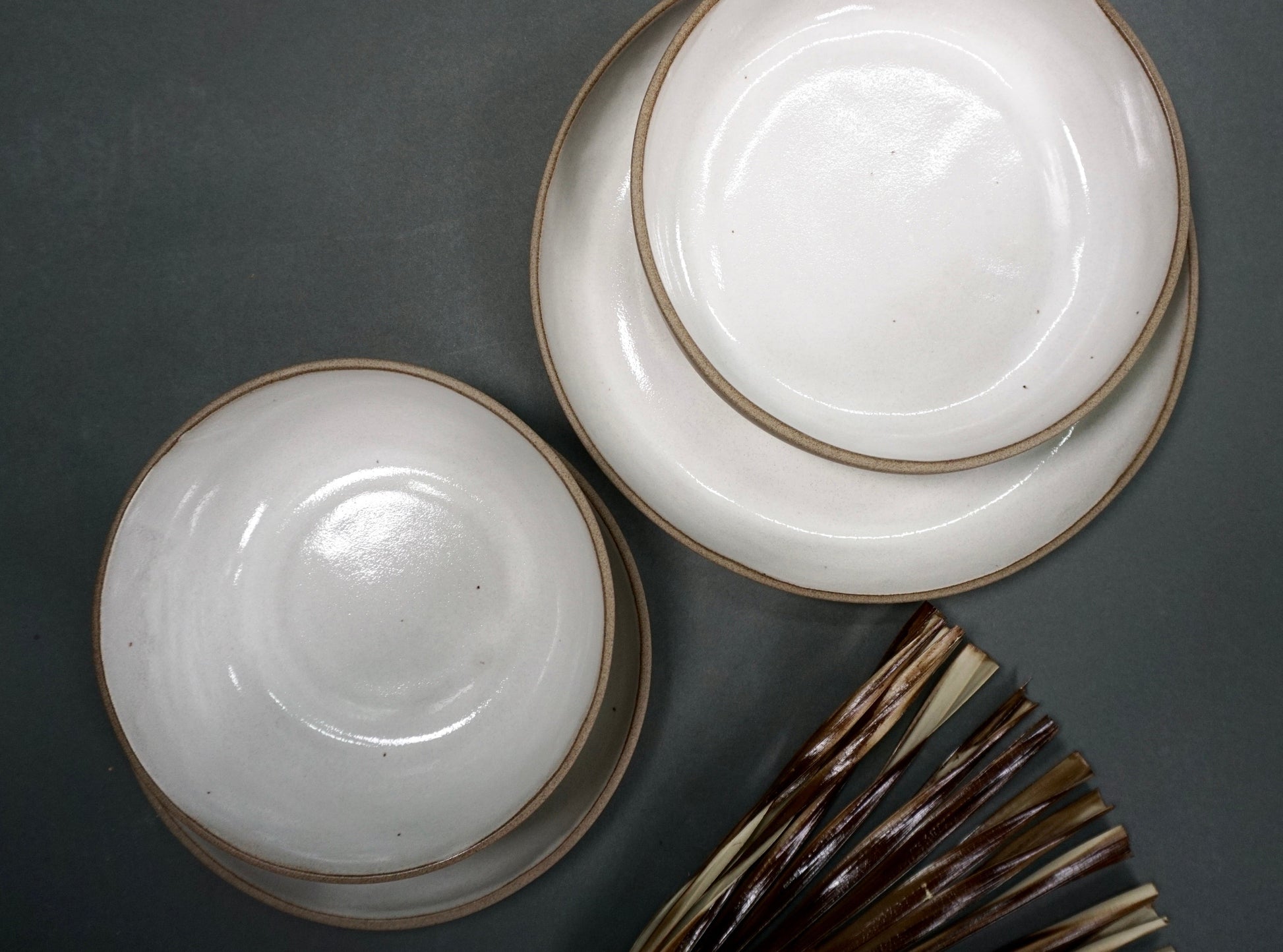 Discover the Thea Dinnerware Set, an artisanal collection meticulously handcrafted in Brooklyn. This curated four-piece service includes everything from intimate side plates to generous dinner plates and dual-purpose bowls, each available as individual purchases. The collection's defining characteristic lies in its thoughtful design: with a pristine glazed interior paired with a tactilely engaging textured ceramic exterior, unified by a timeless gray and white aesthetic. Engineered for everyday elegance, the pieces withstand dishwasher cycles and microwave use, making them as practical as they are visually striking. Transform your dining moments with understated sophistication.