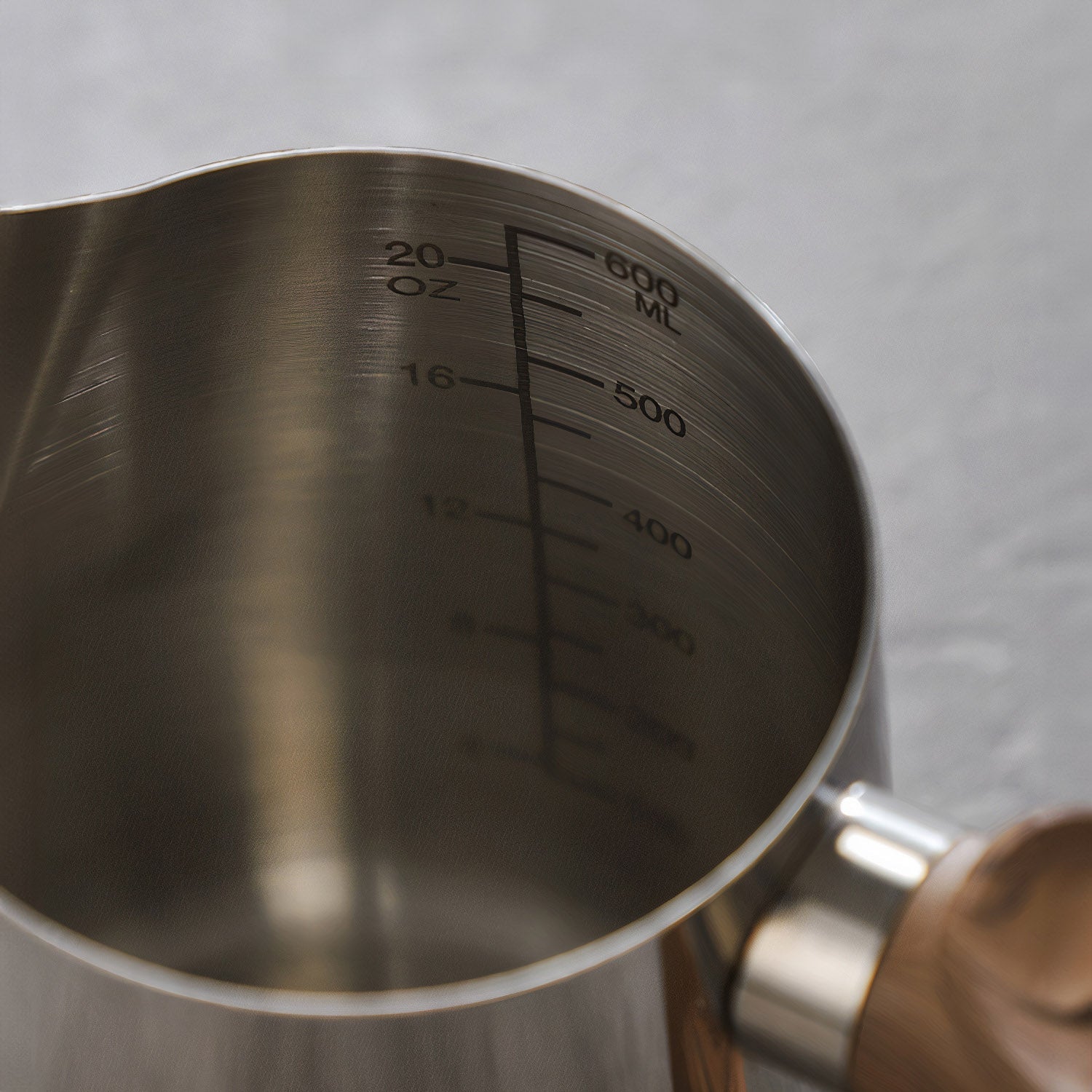 Crafted from premium stainless steel, this milk jug combines robust construction with refined functionality for the discerning barista. The thoughtfully engineered spout delivers precise control for executing intricate latte art, while superior heat retention ensures optimal milk temperature throughout preparation. Its ergonomic handle provides confident grip during frothing, and the corrosion-resistant composition guarantees enduring performance. Whether preparing cappuccinos, flat whites, or specialty espresso beverages, this versatile vessel adapts seamlessly to your craft. Effortless maintenance through dishwasher compatibility and available in multiple capacities to suit varying service requirements.